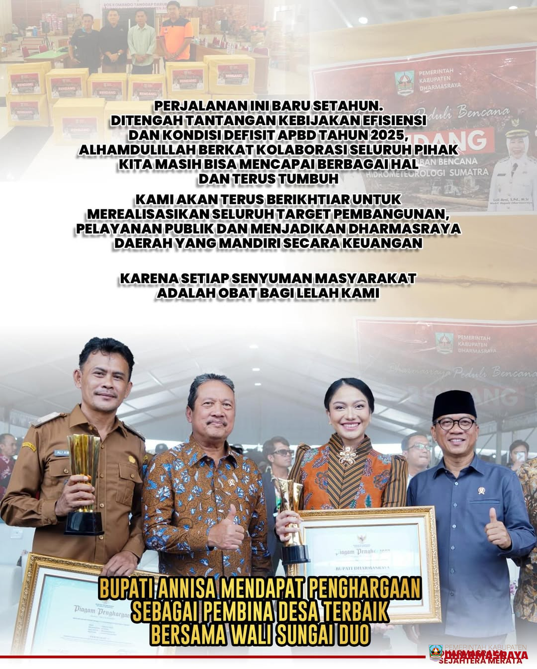 Bismillah, kami tidak akan berhenti berikhtiar. Dengan kolaborasi, kritik dan masukan, serta doa dari seluruh masyarakat, insyaallah kita akan semakin kuat dan solid dalam mewujudkan Dharmasraya Sejahtera Merata. Amin ????❤️????????